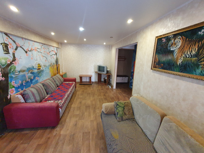 Дом расположен прямо напротив кинотеатра Родины, рядом торговый центр Красноярье, автобусная остановка, банки, аптеки, рынок, магазины. В квартире находятся три евро Дивана и двуспальная кровать, ТВ кабельное, Wi-Fi, стиральная машинка автомат, холодильник, электрический чайник, микроволновая печь, посуда, два комплекта постельного белья, документ отчетности предоставляю.
