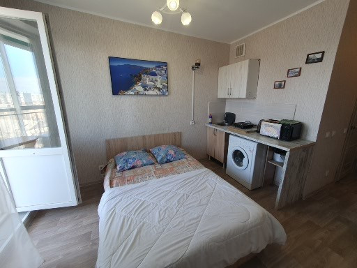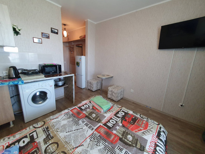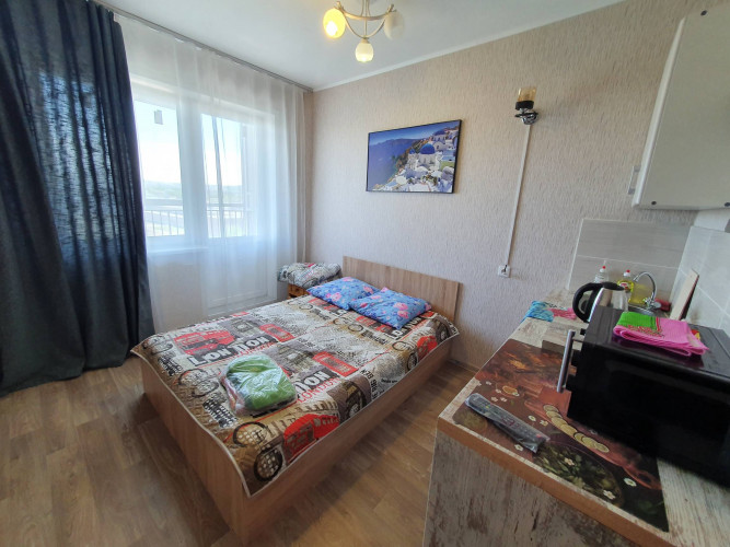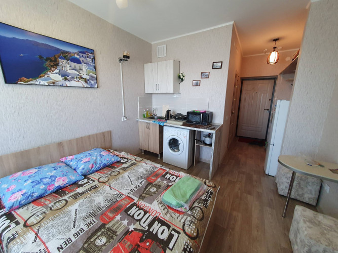 Дом расположен в районе предмостной площади г .Красноярска, ХМЗ , рядом сеть магазинов ,сквер , автобусная остановка, В квартире свежий ремонт что придает уют и комфорт ,В студии находится двуспальная кровать дополнительное место есть раскладушка ,ТВ кабельное , Wi-Fi . стиральная машинка автомат , электроплита , электрический чайник микроволновая печь ,холодильник, комплект постельного белья, посуда ,при заселении более 10 дней скидки предусмотрены документы отчетности предоставляем.